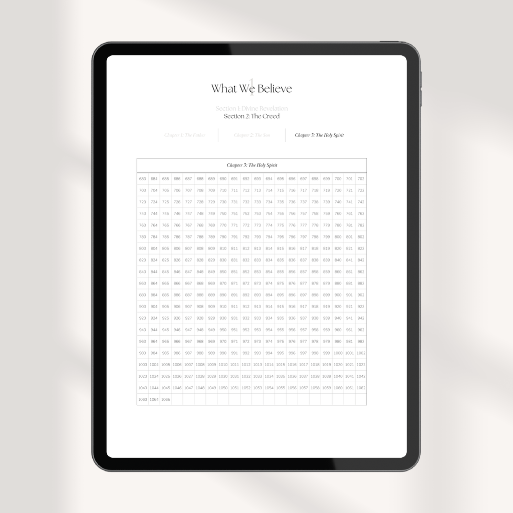 - Tracker for every chapter of the Catechism (Parts 1–4)