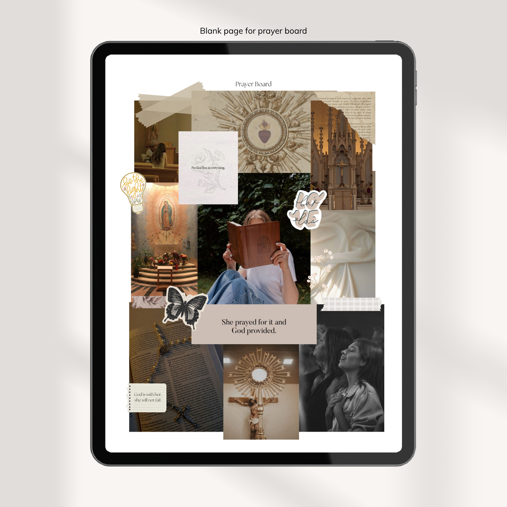- Blank prayer board page to visualize your intentions