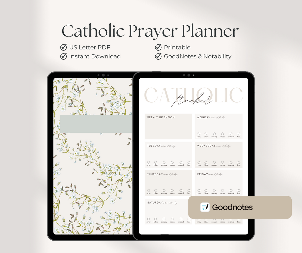 This digital file is compatible with Goodnotes, Notability, and other PDF apps — and also comes with a printable version to create a physical journal or binder. Whether you prefer to plan weekly on your iPad or print and write by hand, this planner helps you stay consistent and intentional in your spiritual journey.