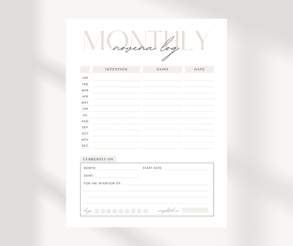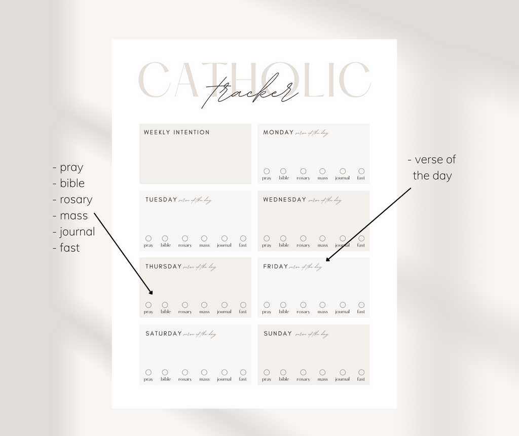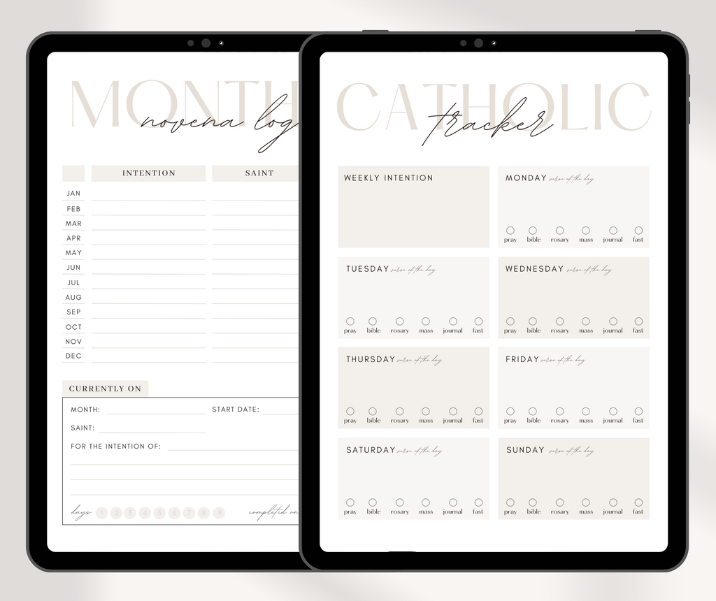 Stay rooted in daily prayer and deepen your Catholic faith with this simple, guided Prayer Planner & Tracker. Designed to help you organize your spiritual habits, prepare for Mass, and keep your prayers and reflections all in one place.